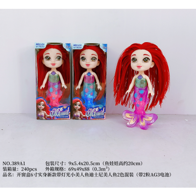一个6寸实身新款带灯光小美人鱼迪士尼美人鱼(带2粒AG3电池)
