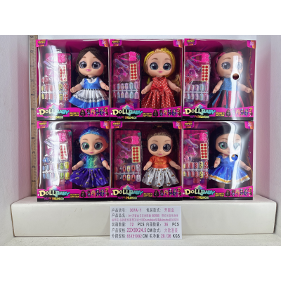 一个11.5寸实身9关节时尚芭比娃娃彩色长裙+配件
