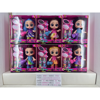 一个紫色+亮片的11.5寸实身9关节时尚芭比娃娃