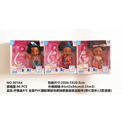 一盒12个8寸 PVC全搪胶黑肤色肥童肥妹娃娃(带IC音乐)