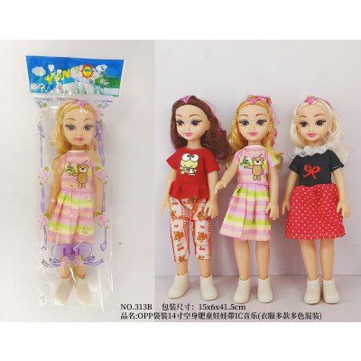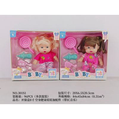 一个卡头PVC袋装14寸空身肥童娃娃带IC音乐加梳子镜子