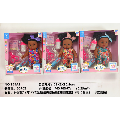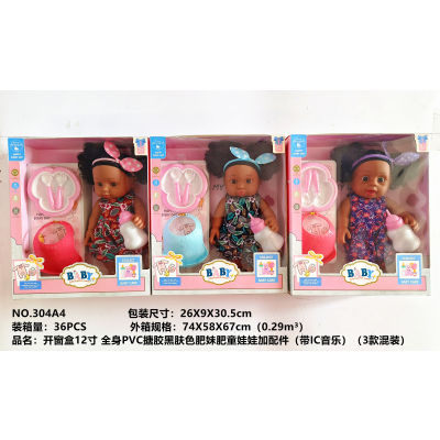 一个12寸 PVC全搪胶黑肤色肥妹肥童娃娃