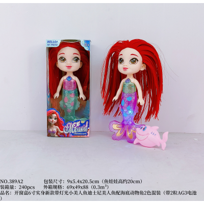 一个6寸实身新款带灯光小美人鱼迪士尼美人鱼配海底动物(带2粒AG3电池)