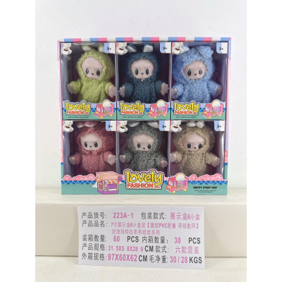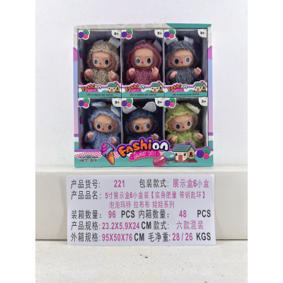 一个7寸展示盒6小盒装【搪胶PVC肥童 带钥匙环】泡泡玛特拉布布娃娃系列