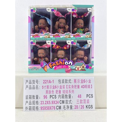 一个5寸展示盒6小盒装【实身肥童 4D眼睛】黑肤色肥童娃娃系列