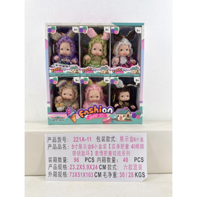 一个5寸展示盒6小盒装【实身肥童 4D眼睛 带钥匙环】表情肥童娃娃系列