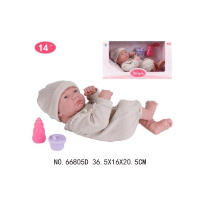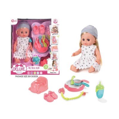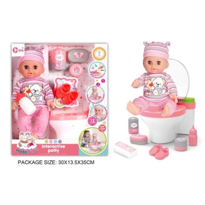 一个14英寸的乙烯基娃娃,有12个声音IC(鞋子,瓶子,盘子,马桶,牛奶链)