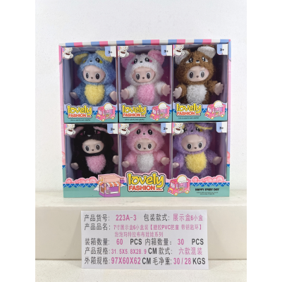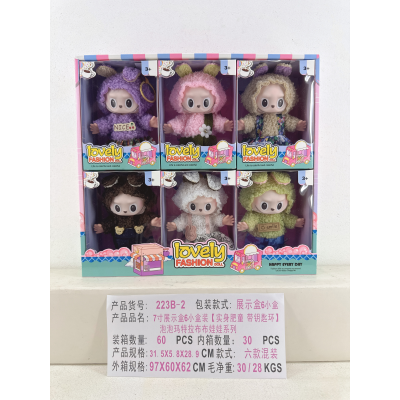一个7寸展示盒6小盒装【搪胶PVC肥童 带钥匙环】泡泡玛特拉布布娃娃系列