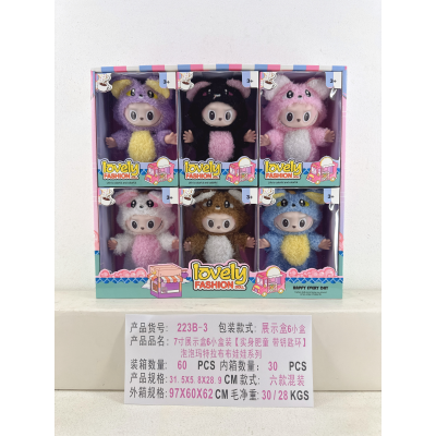一个7寸展示盒6小盒装【实身肥童 带钥匙环】泡泡玛特拉布布娃娃系列