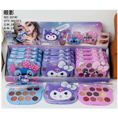 一个展示盒12个带卡通图案的四色眼影盘