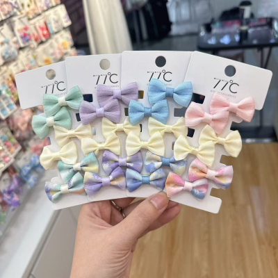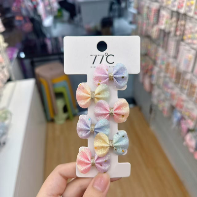 一个彩色和纯色混装的蝴蝶结儿童发饰