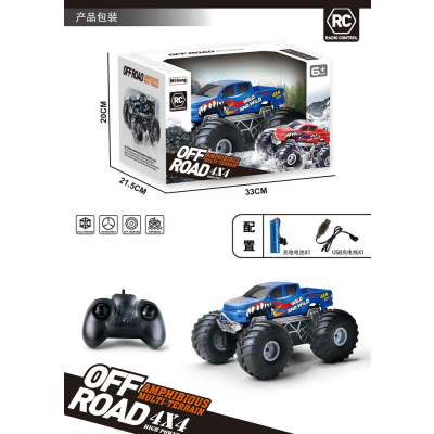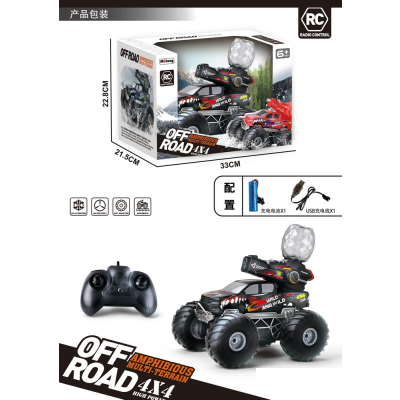 一辆遥控水陆两用车辆 带有自吸式喷射水。