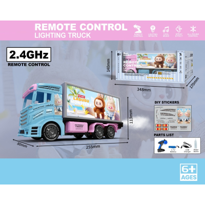 一辆2.4g 8一般稳定,库洛米 遥控带灯的集装箱卡车, 音乐喷雾(3.7v电池)。 Usb充电线)