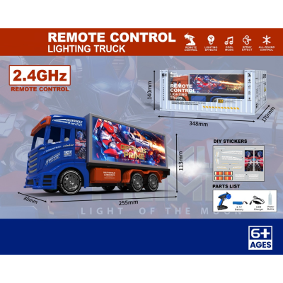 一辆2.4g 8 tholab 遥控带灯的集装箱卡车, 音乐喷雾(3.7v电池)。 Usb充电线)