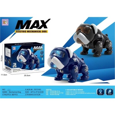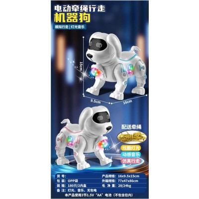 一个电动机械狗狗,灯光音乐,爬行功能,带三档开关(两色混装)。