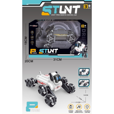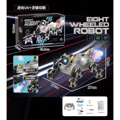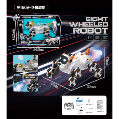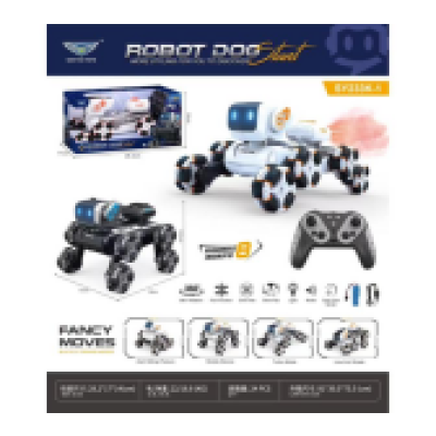 一个“遥控智能机器狗特技车音乐和灯光喷白灰\”