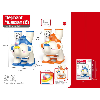 一个大象,把球吹倒玩具