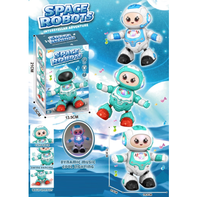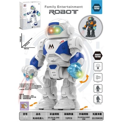 一个电动声光机器人,带灯光音乐,电动直行(两色混装)。