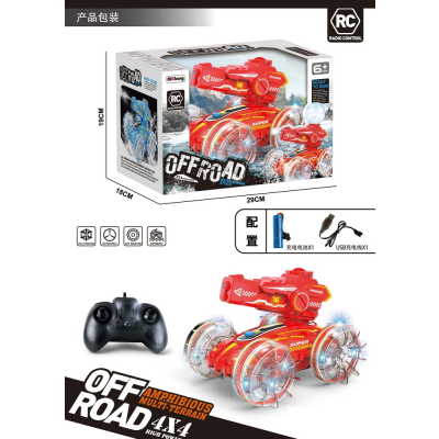一辆遥控两栖动物 带有自吸式喷射水。