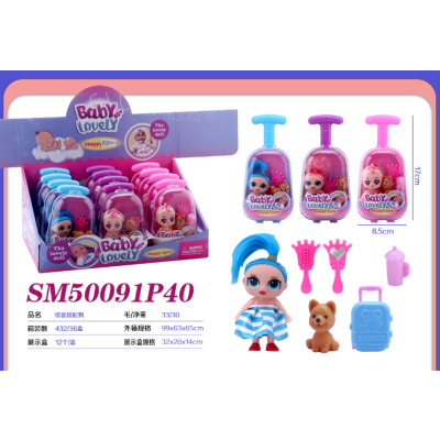 一个展示盒十二个小拉箱(多款娃娃+奶瓶+狗+两个冰激凌)