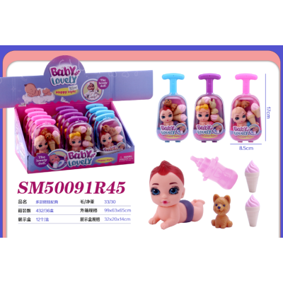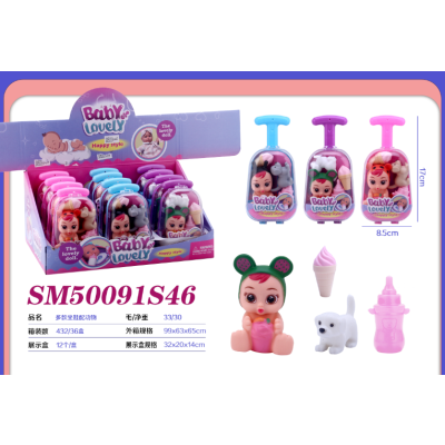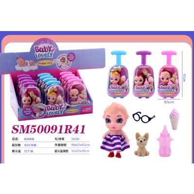 一个展示盒十二个小拉箱(多款娃娃+奶瓶+狗+ 冰激凌)