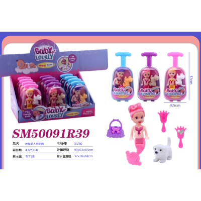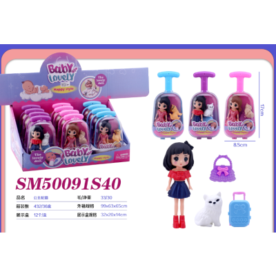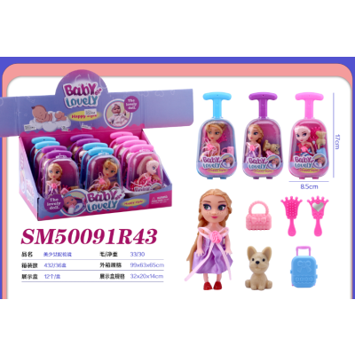 一个展示盒十二个小拉箱(多款娃娃+镜子+手提包+狗)