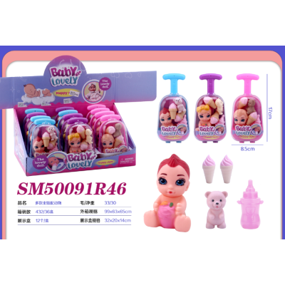 一个展示盒十二个小拉箱(多款娃娃+奶瓶+熊+2个冰激凌)