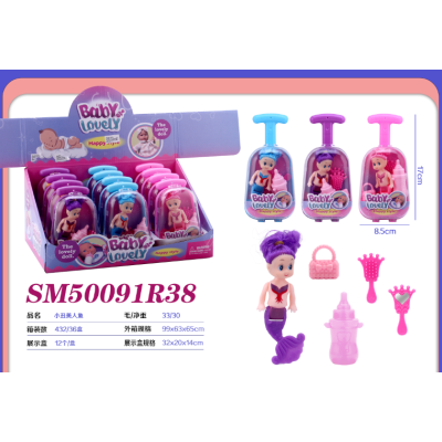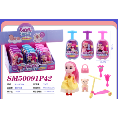 一个展示盒十二个小拉箱(多款娃娃+小熊+镜子+滑板车+手提包)
