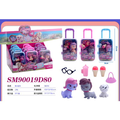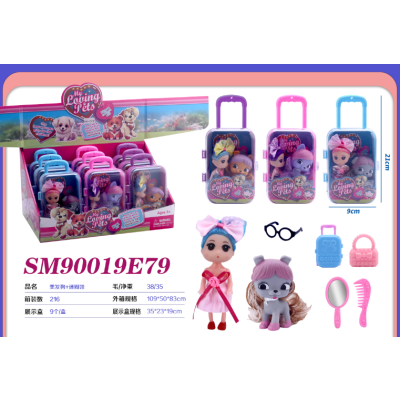一个展示盒9个大拉箱(美发狗+迷糊娃+梳子+镜子+行李箱+手提包+眼镜)