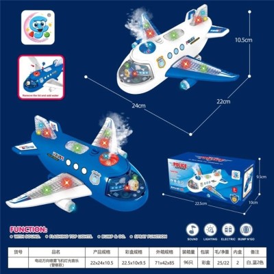 一个电动万向喷雾灯光音乐飞机(警察款)