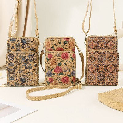 一个软木印花便携手机包外出轻便手拎包