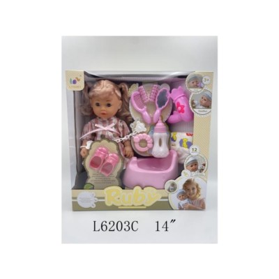 一盒14寸黑胶12音水尿饮用功能娃娃+配件