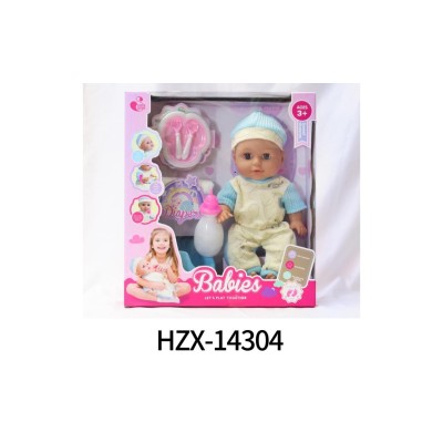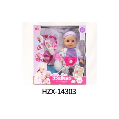 一套35cm活动眼娃娃+听诊器+体温计+马桶+奶瓶+水尿功能