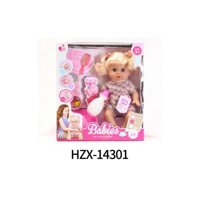 一套35cm活动眼少女娃娃+美发配件+便盆+奶瓶+饮水排尿功能