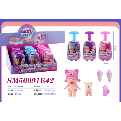 一个展示盒12个小拉箱(多款娃娃+两个冰激凌+小熊+奶瓶)